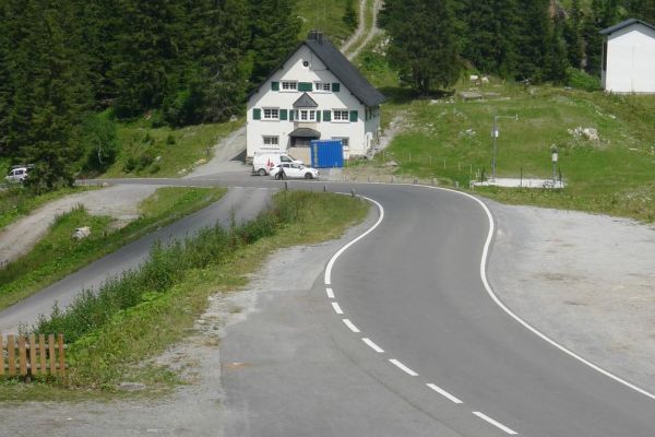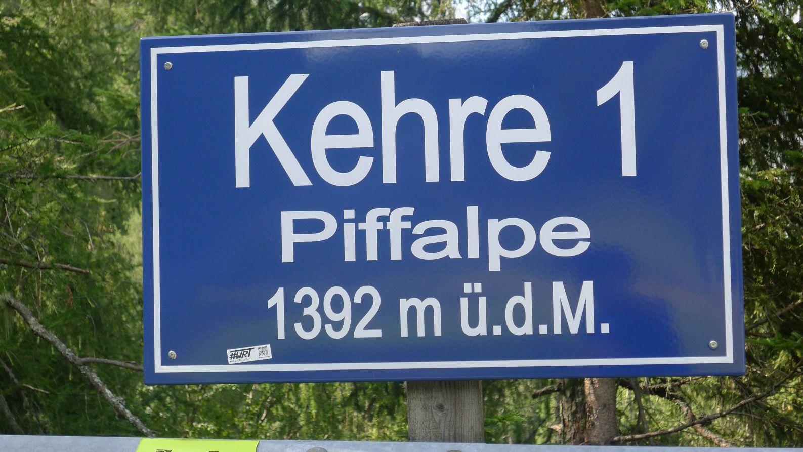 10:11 Uhr: die erste Kehre bei 1392 m ist erreicht. Ein Anruf von Klaus trifft ein, sie hängen in der Mautstelle fest.