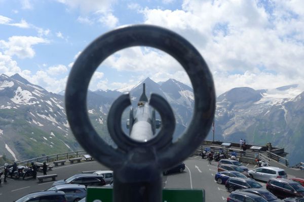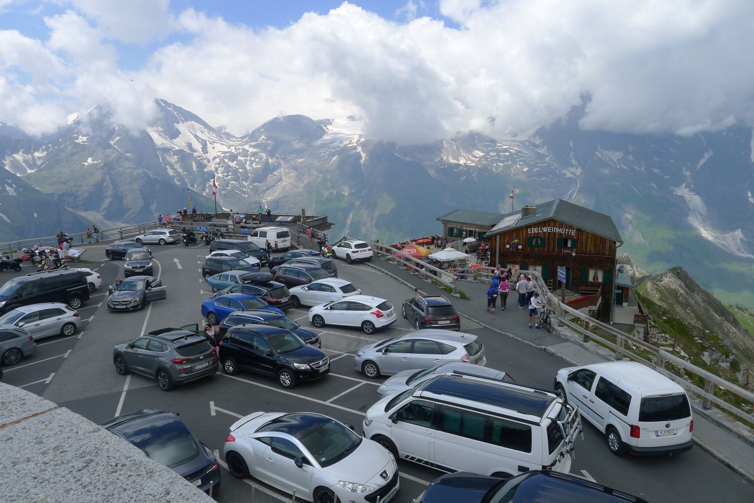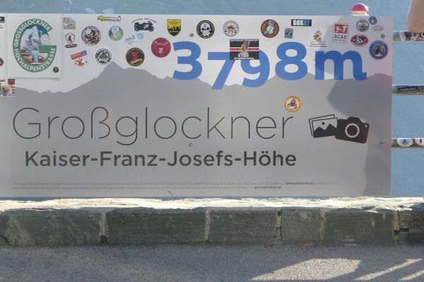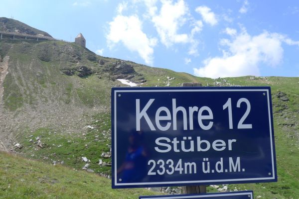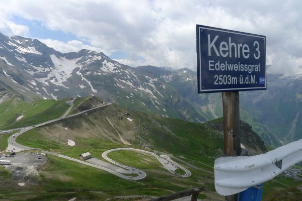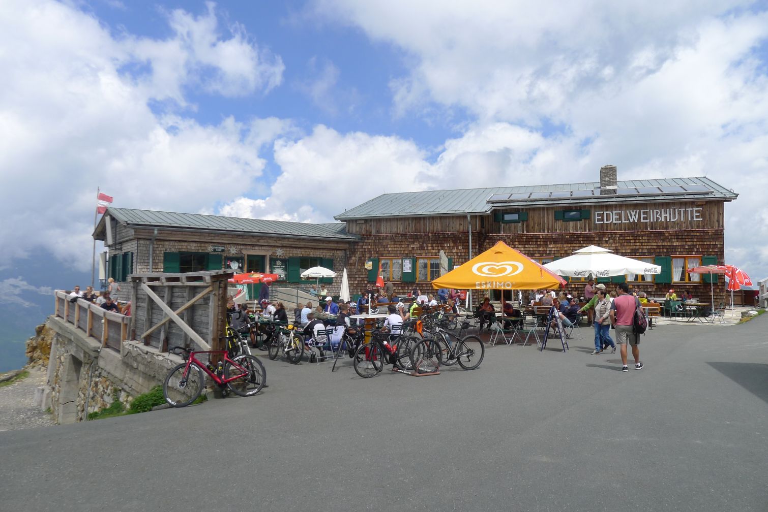 12:25 Uhr: 6 Kehren später ist die Edelweißspitze, mit 2571m der höchste Punkt der Großglockner Hochalpenstrasse erreicht. Es folgt eine lange Pause. Als nächstes trudeln Thomas, der bei der Auffahrt einen Defekt hatte, und Steff ein. Andi und Klaus stärken sich auf der Hütte beim Fuscher Törl mit Kässpatzen, ehe sie die Edelweissspitze in Angriff nehmen.