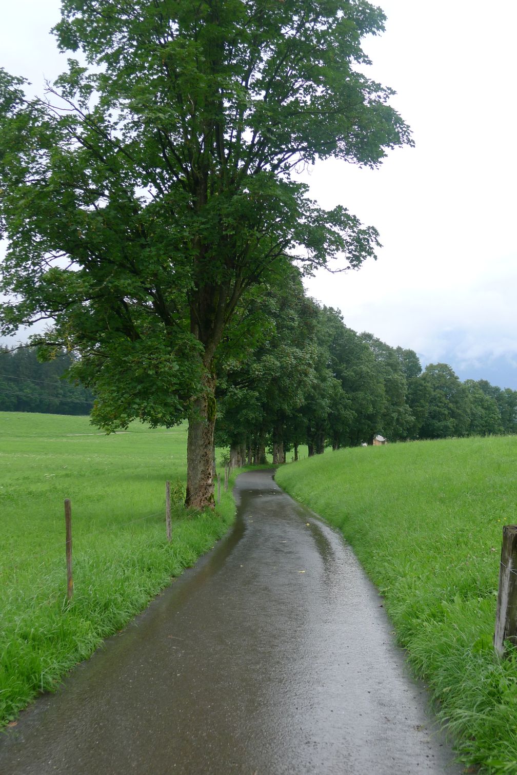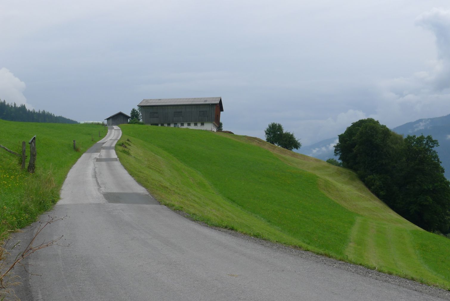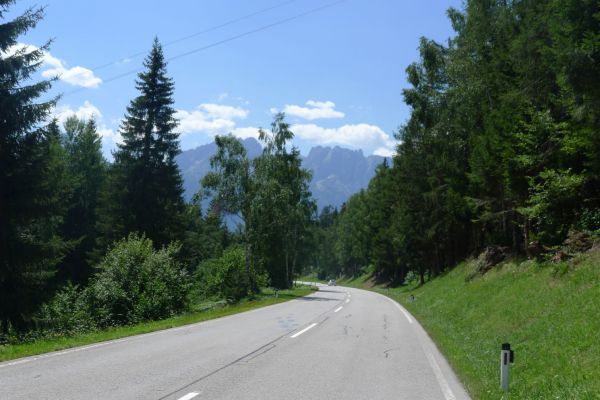 16:28 Uhr: der Regen hat aufgehört und die Wetter-App sagt ein regenfreies Zeitfenster von etwa 2 h voraus. Wir machen uns wieder auf den Weg. Über St Johann in Tirol und Ellmau umrunden wir das Kaisergebirge. Vom Wilden Kaiser ist leider nichts zu sehen, die Wolken hängen zu tief.