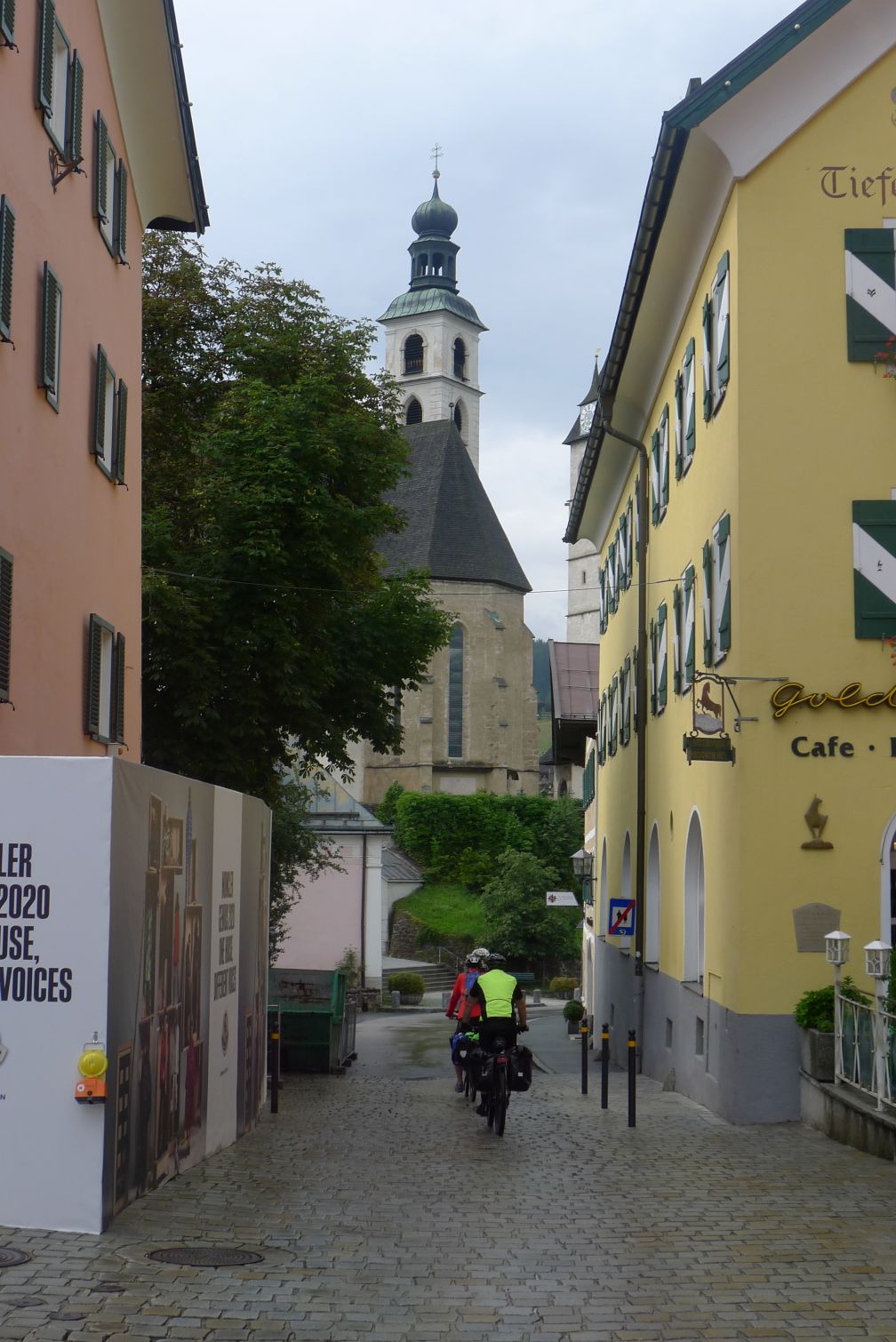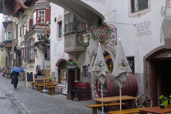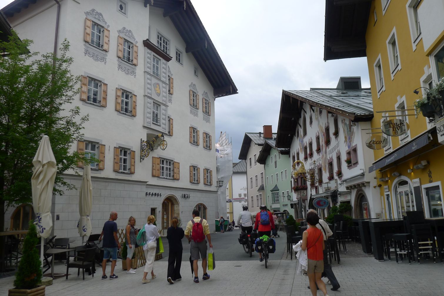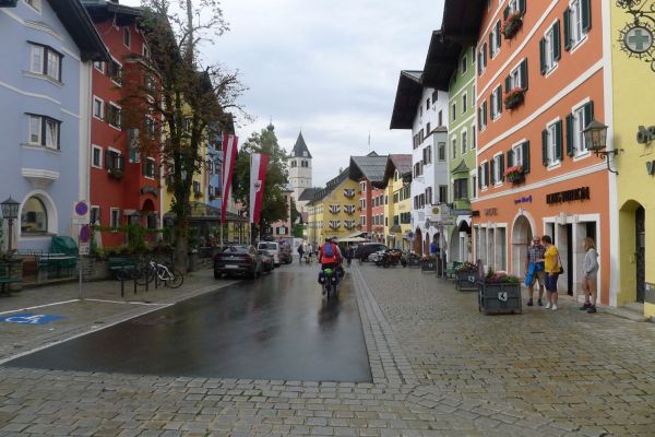 14:45 Uhr: Kitzbühel ist erreicht. Nach einem kurzen Rundgang durch die Altstadt kehren wir ein und machen Mittag. Genau zur richtigen Zeit, denn draußen beginnt es in Strömen zu regnen.