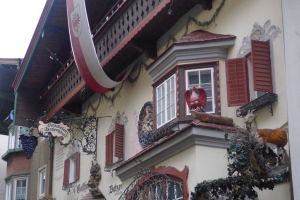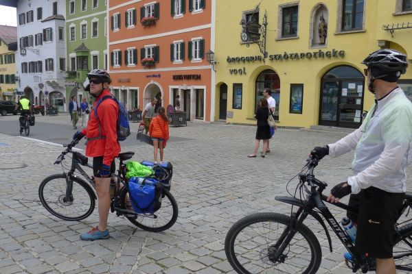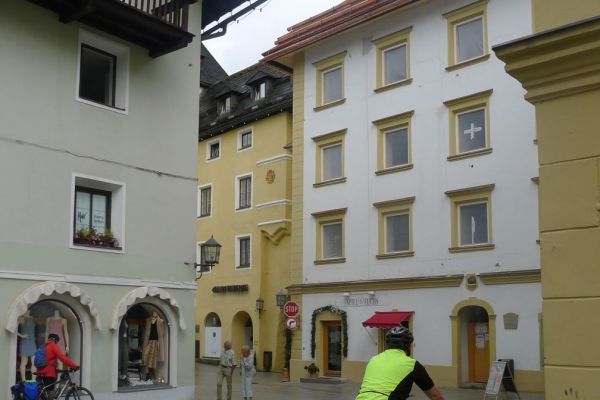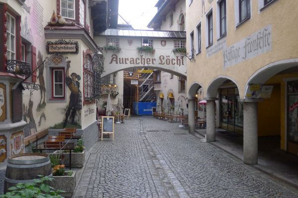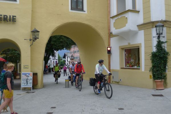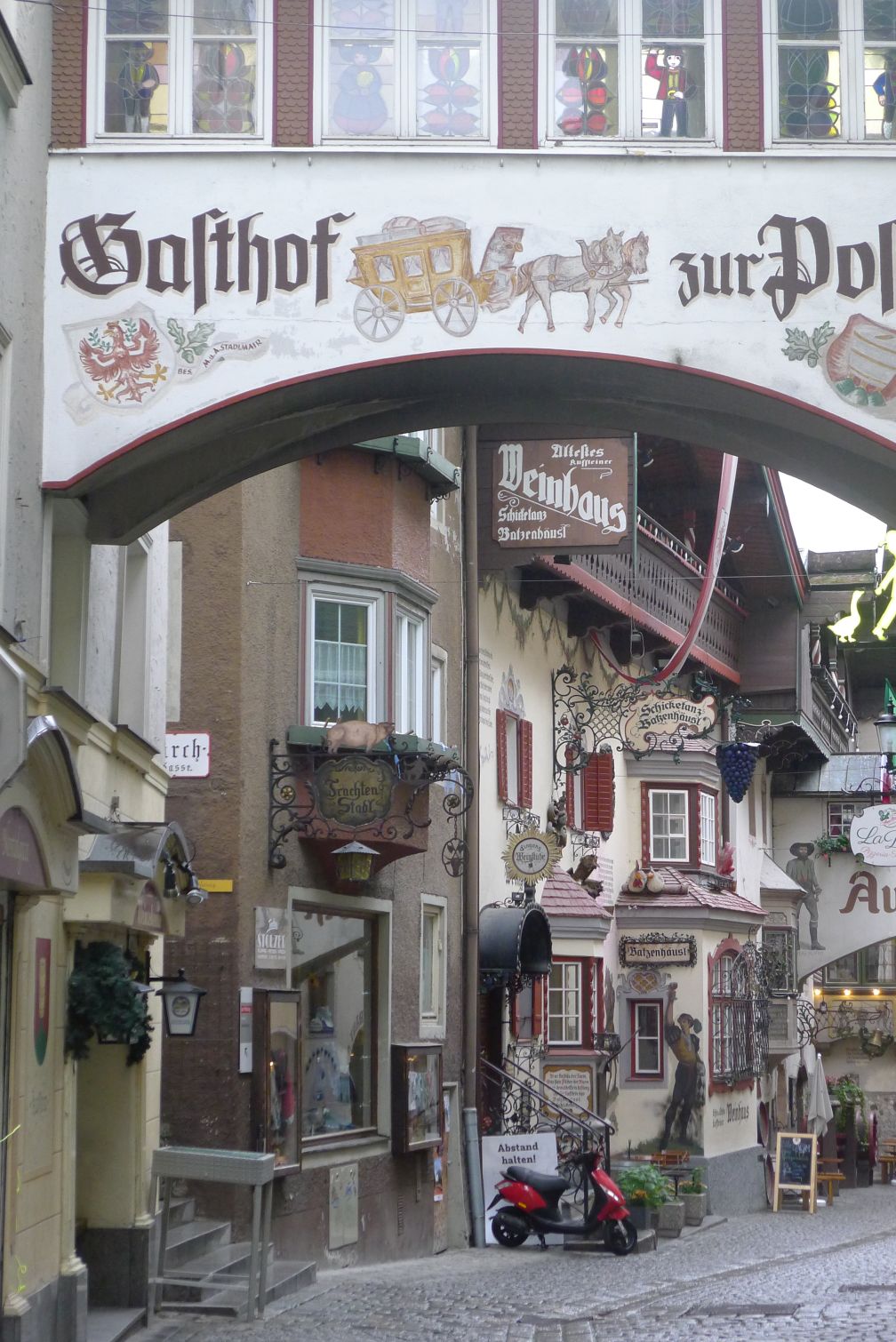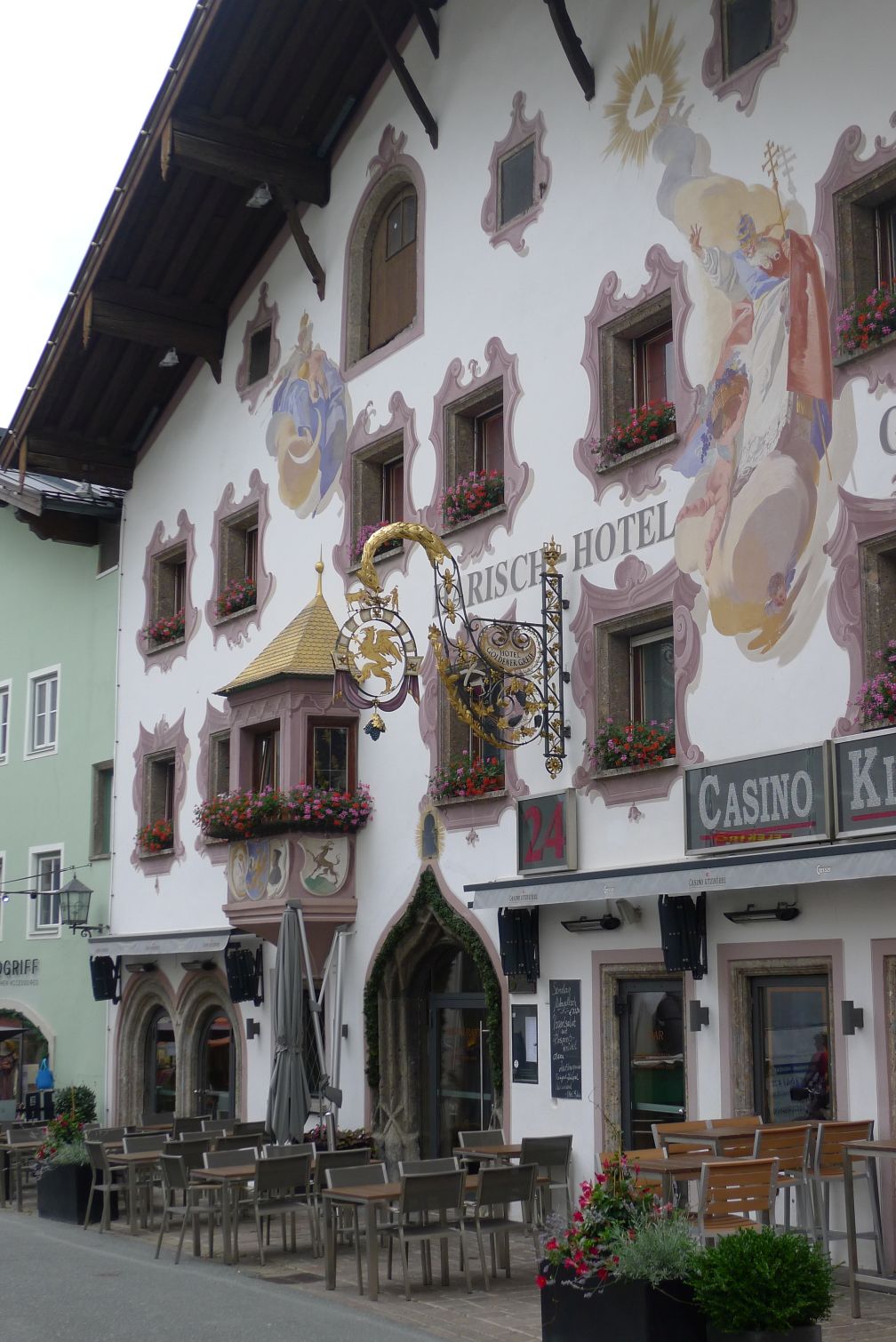 14:45 Uhr: Kitzbühel ist erreicht. Nach einem kurzen Rundgang durch die Altstadt kehren wir ein und machen Mittag. Genau zur richtigen Zeit, denn draußen beginnt es in Strömen zu regnen.