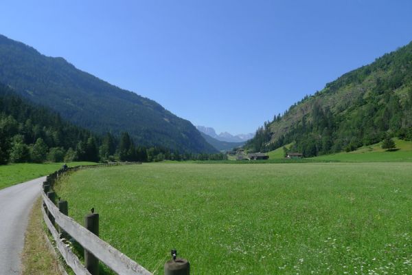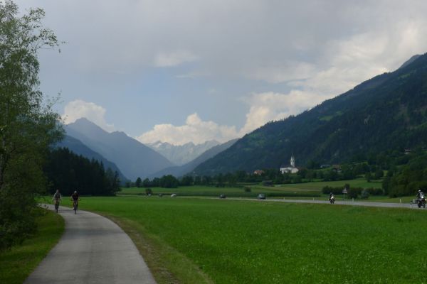 10:40 Uhr: Nach 28km ist die Talsohle erreicht. Wir rollen weiter auf einem Fahrradweg entlang der Möll und können in der Ferne schon die Lienzer Dolomiten erblicken.