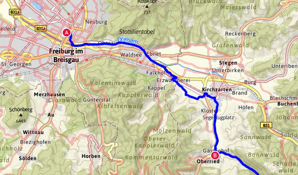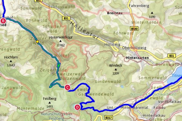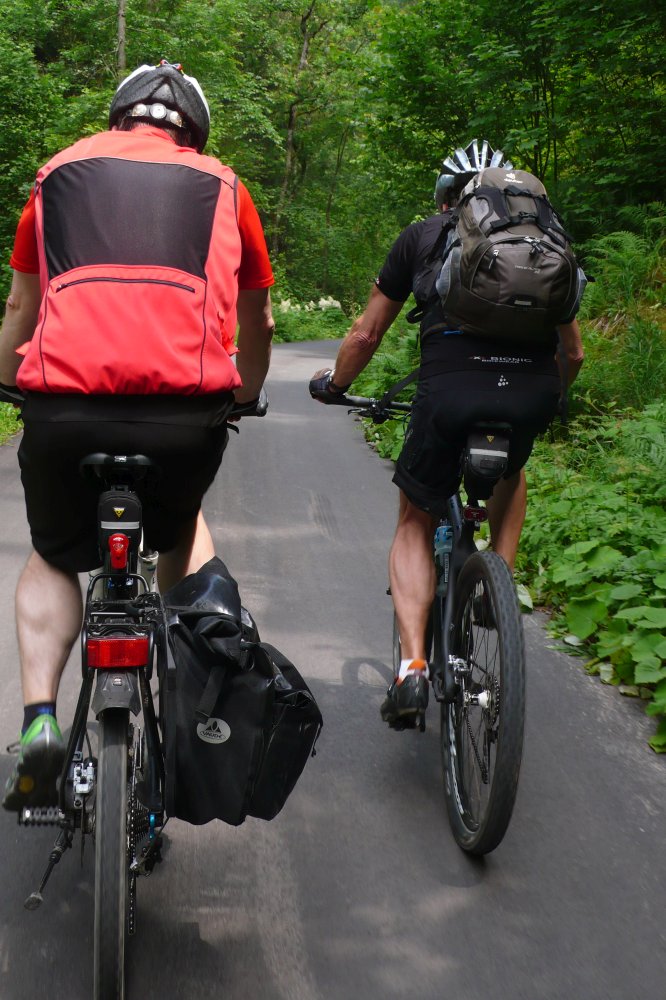 Von dort ging es mit dem Zug durch die Höllentalschlucht bis Freiburg und nach mehrmaligen Umsteigen weiter bis Butzbach, von wo aus die letzten Kilometer nach Vollnkirchen wieder mit dem Rad zurückgelegt wurden. Um 23:45 waren wir wieder zu Hause und hatten 83,5km Wegstrecke und 1290 überwundene Höhenmeter auf dem Tacho stehen.